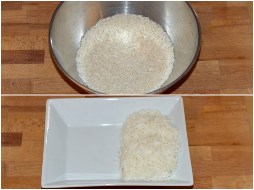 Nel frattempo che il pollo cuoce, preparate e cuocete anche il riso basmati, semplicemente bollendolo in acqua leggermente salata e scolandolo poi al dente.
