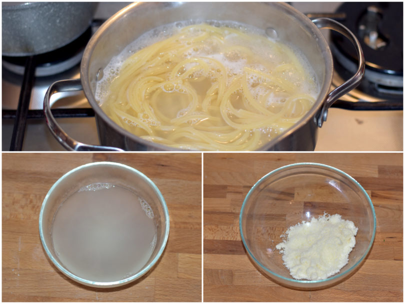Nel frattempo mettete a bollire l'acqua per la pasta, poco salata (perché il pecorino è molto saporito), e quando bolle calate la pasta.