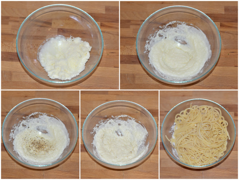 Dopo qualche minuto prendete un po' di acqua di cottura e aggiungetela poco per volta al formaggio grattugiato, mescolando bene, fino ad ottenere una crema non troppo liquida, a cui aggiungerete il pepe.