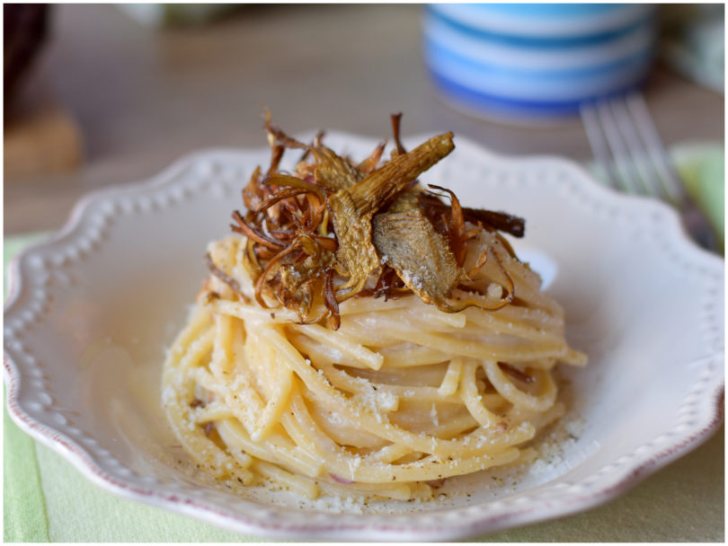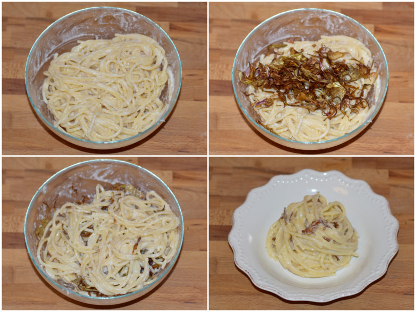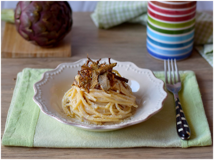 La cacio e pepe con carciofi è pronta, servitela subito.