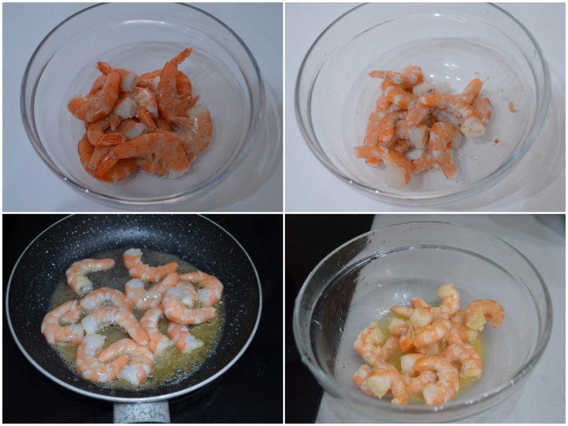 Nel frattempo insaporite le code di gambero con sale e brandy e fatele cuocere in padella con il burro.