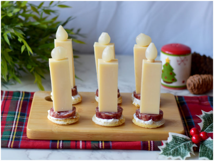 Un’idea creativa, semplice e d'effetto per le tavole delle feste: le candeline di Natale sono delle mini tartine scenografiche, ideali come antipasto o come modo diverso di servire salumi e formaggi, che sia in versione monoporzione (potete sfruttarle anche come segnaposto) o come tagliere unico proposto in maniera un po' originale. Più che una vera e propria ricetta, proprio come i miei alberi di Natale di pancarrè o le mie candele salate, direi che sono un'idea furba da copiare per stupire con pochi ingredienti e in pochi minuti!