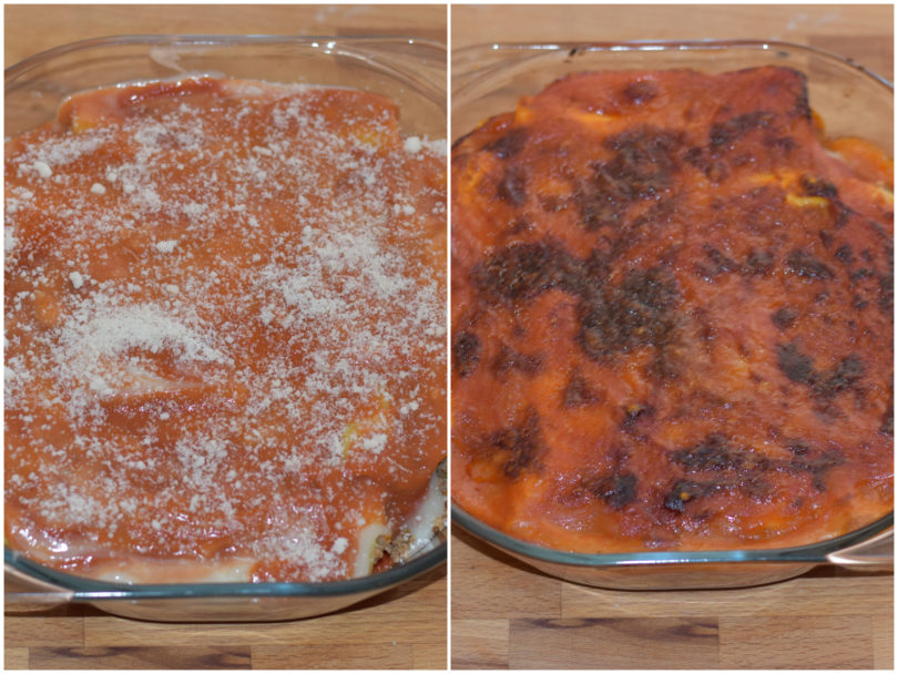 Completate con altro sugo e altra besciamella e un po' di grattugiato vegetale (o pangrattato con un filo d'olio).