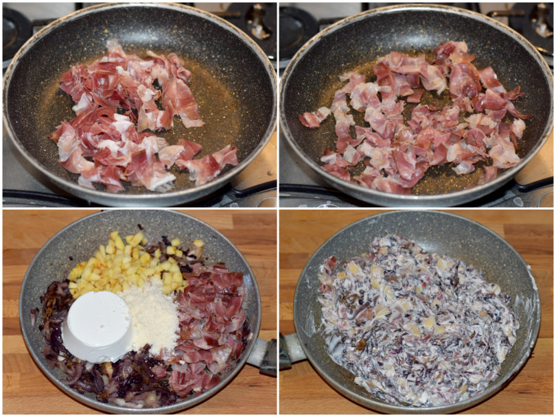 Unite quindi al radicchio speck, mela, ricotta e parmigiano e mescolate.