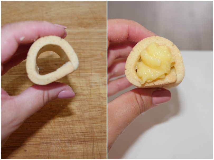 Lasciate almeno intiepidire prima di togliere delicatamente gli stampini, quindi lasciate raffreddare completamente prima di farcirli con la crema, aiutandovi con una sac-à-poche.
