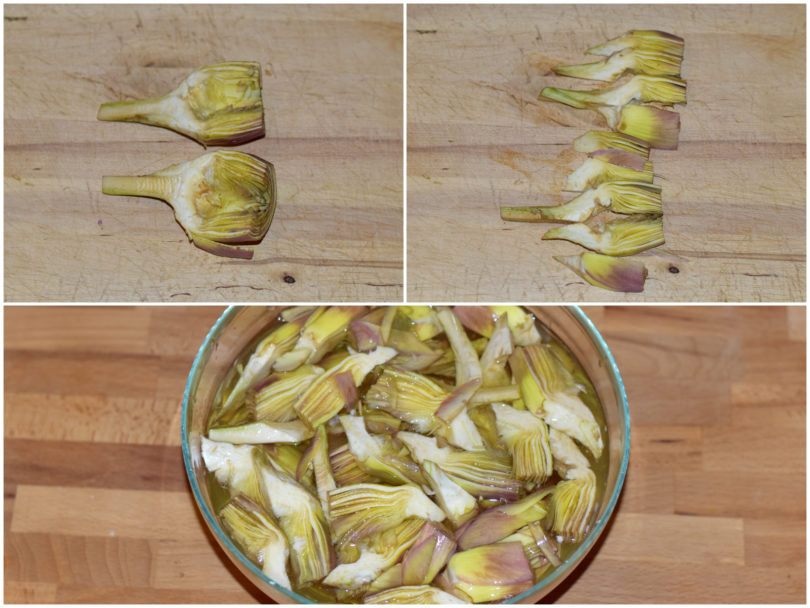 Tagliateli a fettine e lasciateli riposare in acqua acidulata con succo di limone per 20 minuti, in modo che non si ossidino.