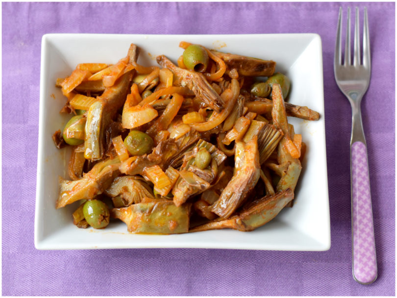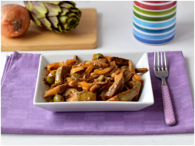 Ecco la deliziosa caponata di carciofi, una variante invernale della classica caponata siciliana, perfetta per i mesi freddi. Dopo la variante di verdure devo dire che anche questa mi è piaciuta molto: i carciofi sostituiscono le melanzane, rendendo il piatto un pochino più leggero ma altrettanto gustoso. Prepararla è semplice e veloce, senza bisogno di friggere nulla. Basta creare un fondo di cottura con cipolla, sedano, olive, capperi e pomodoro, aggiungere un tocco agrodolce con zucchero e aceto e unire i carciofi saltati in padella. Una volta pronta, lasciatela riposare in frigo per una notte per un sapore ancora più intenso. Buonissima sia calda che fredda!