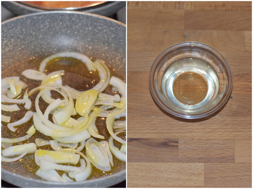 Mescolate e lasciate cuocere per 10 minuti, poi lo zucchero e sfumate con l'aceto.