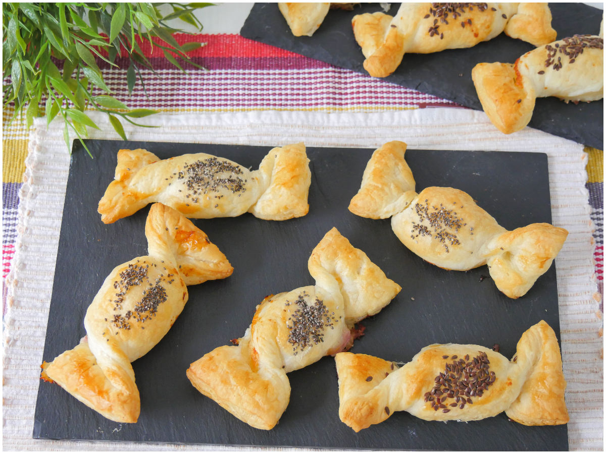 Le caramelle di pasta sfoglia sono un'idea carina e originale per preparare un antipasto saporito. Potete farle così come le ho fatte io, farcendole con pancetta e gorgonzola, oppure sfruttare solo l'idea di base e variare il ripieno a piacere: verdure miste saltate in padella per delle caramelle vegane (comprando la sfoglia apposita), spinaci e ricotta per il più classico dei ripieni vegetariani, formaggio spalmabile e prosciutto cotto per un'alternativa semplicemente più delicata, e via dicendo... Se quindi volete stupire i vostri ospiti con un antipasto diverso dal solito, cimentatevi con queste caramelle di sfoglia e fatemi sapere!