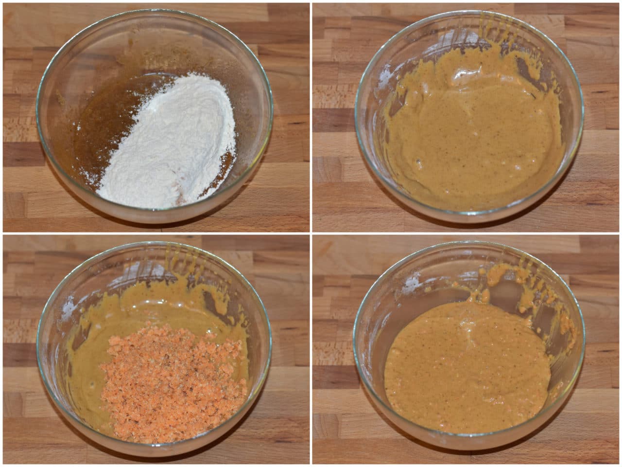 Versate le polveri sui liquidi e amalgamate, quindi incorporate anche la carota.