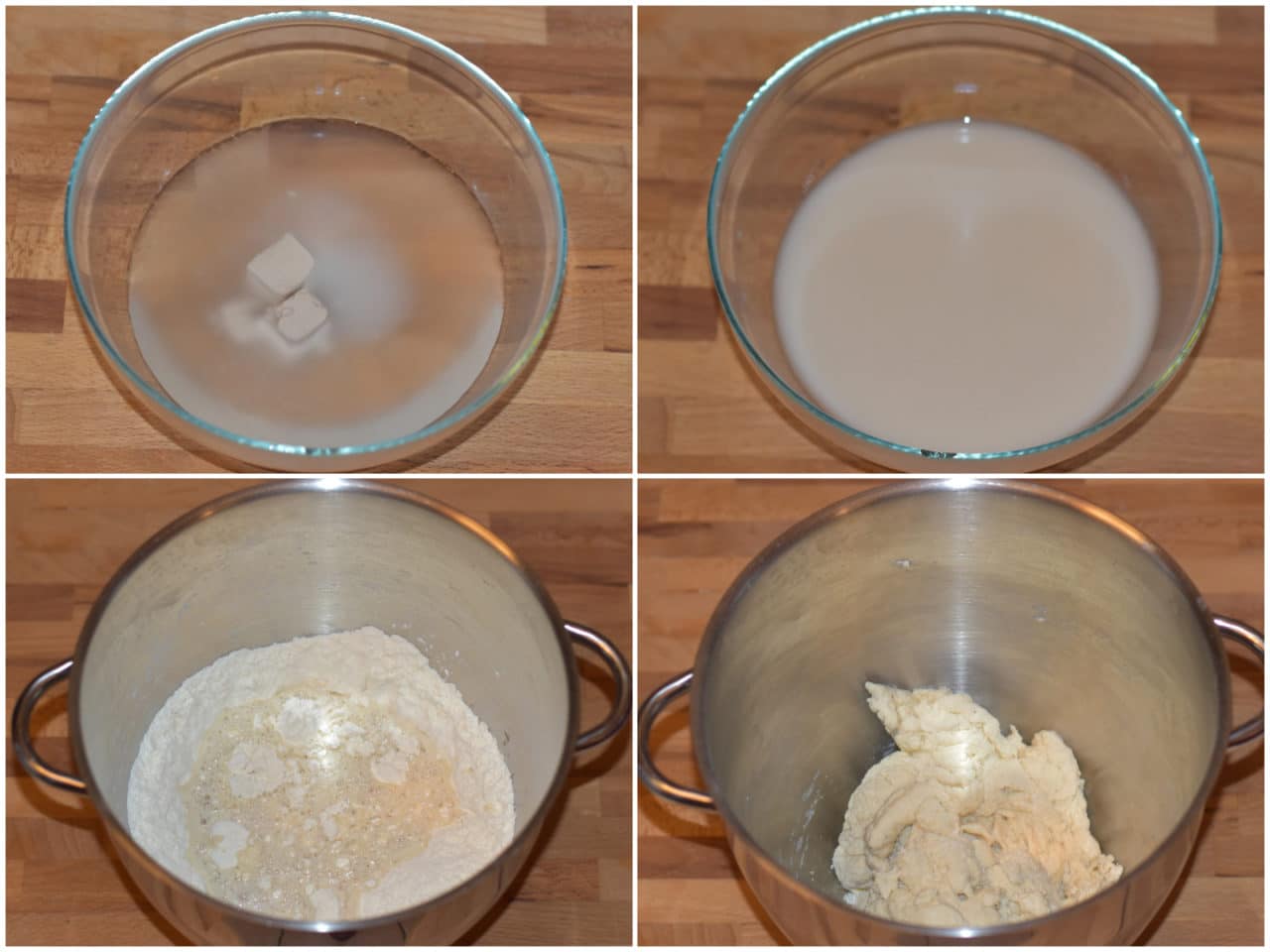 Sciogliete lievito e zucchero nell'acqua appena intiepidita e incorporateli alla farina.