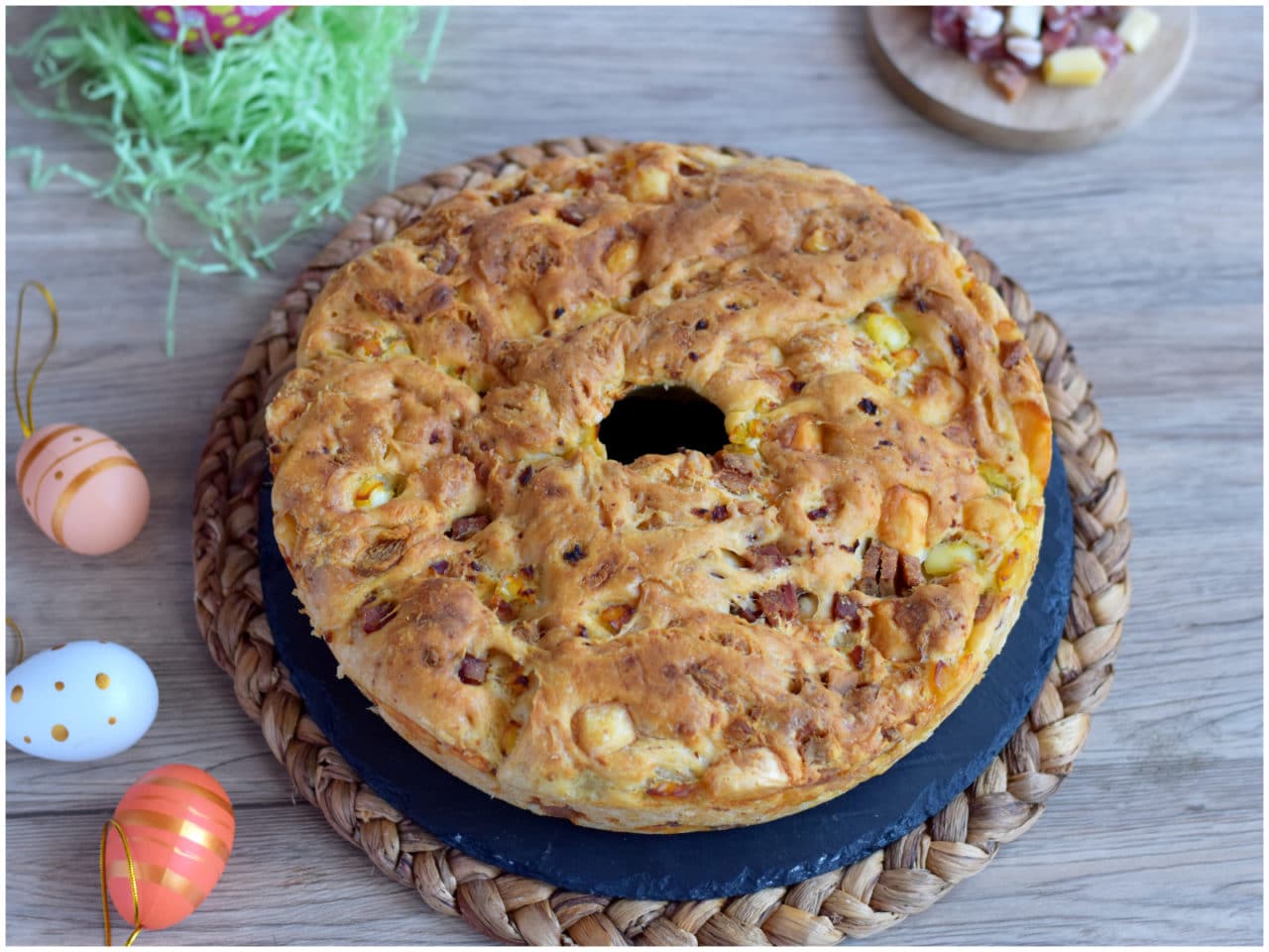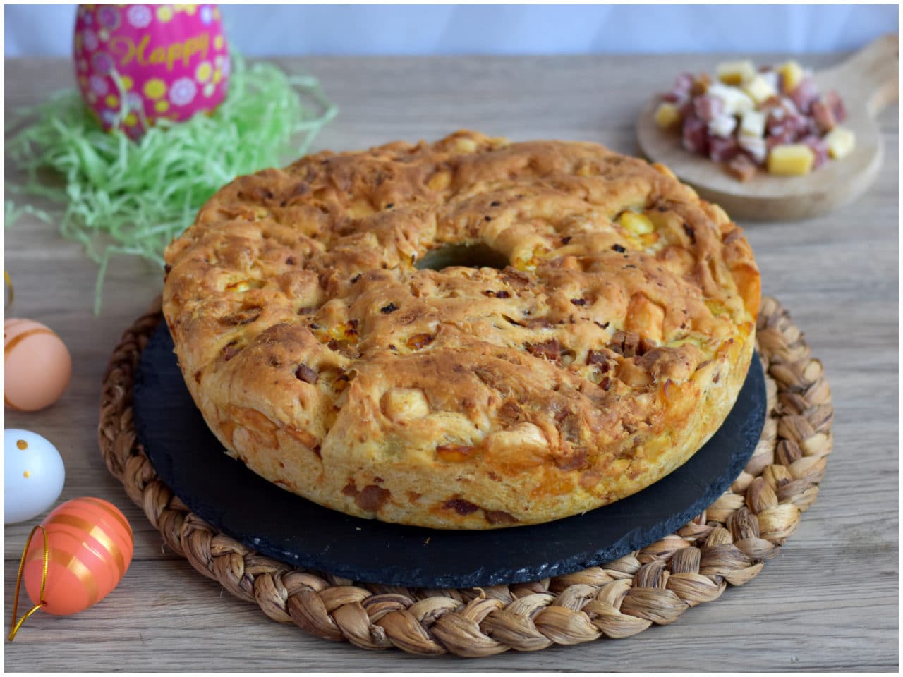 PS: se il lievito vi sembra tanto, potete dimezzarlo, raddoppiando ovviamente i tempi di lievitazione, in modo da ottenere un casatiello più digeribile.