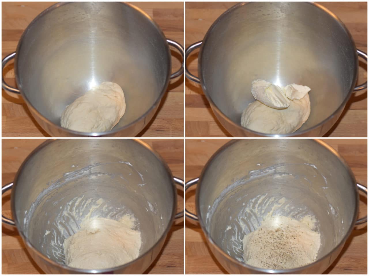 Incorporate la margarina e poi anche il pepe, lavorando fino ad ottenere un impasto ben incordato.