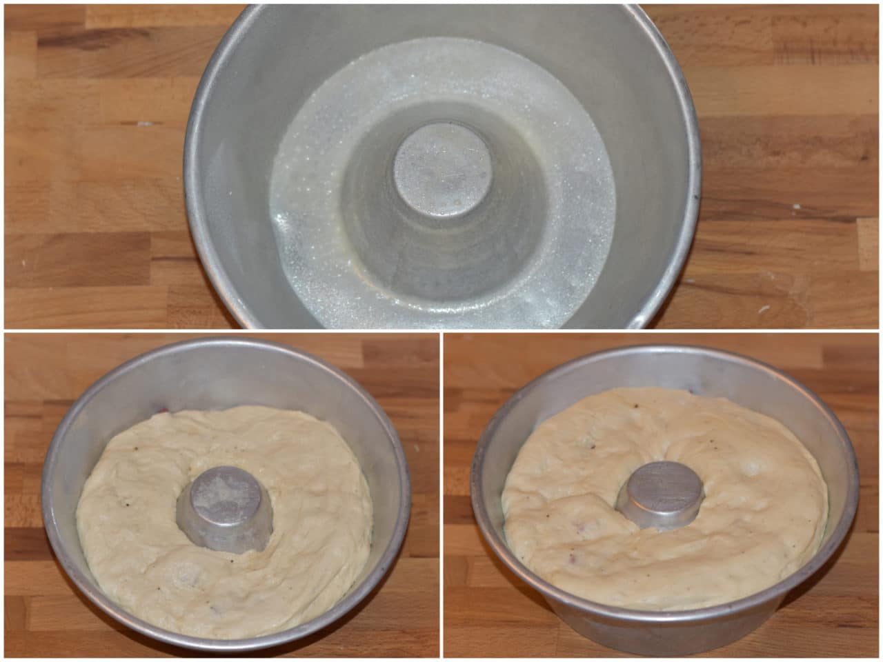 Trasferite nello stampo unto con olio o margarina e lasciate lievitare ancora per 2 ore o fino al raddoppio.
