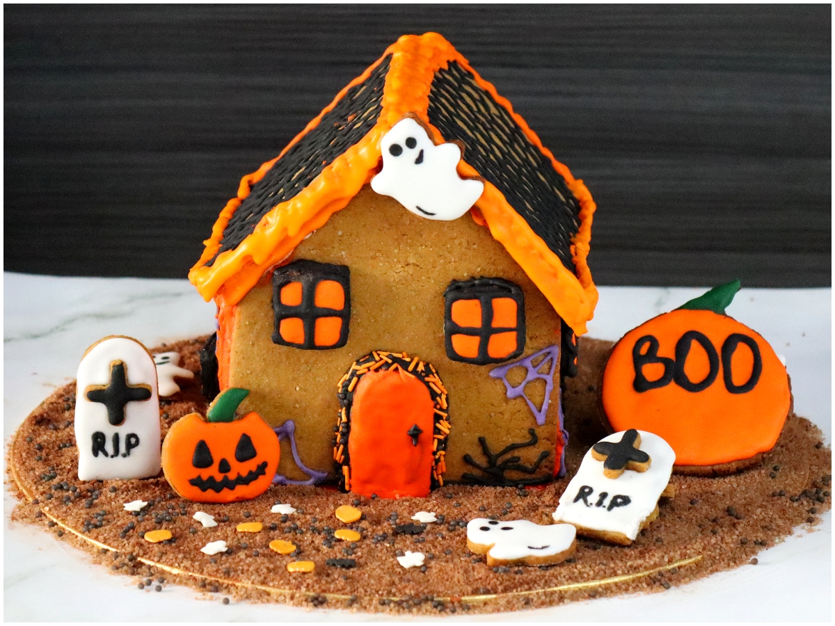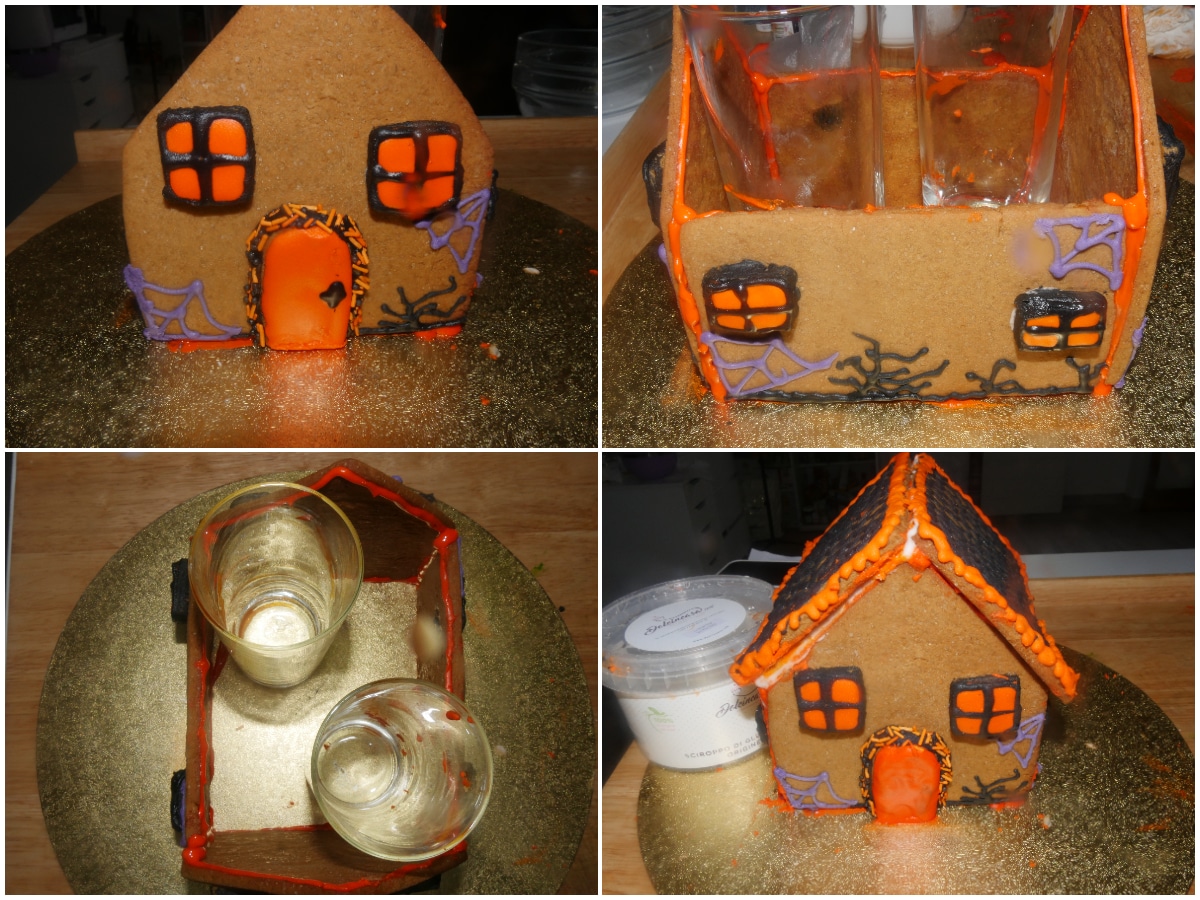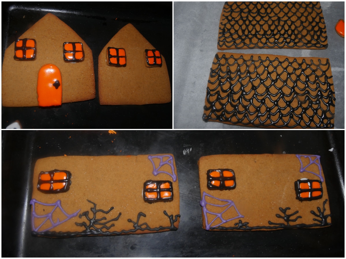Una volta perfettamente asciutta la glassa di ogni singolo elemento, la vostra casetta di pan di zenzero di Halloween sarà pronta.