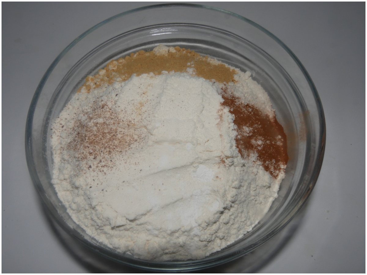 In una ciotola, unite la farina con spezie, sale e bicarbonato.