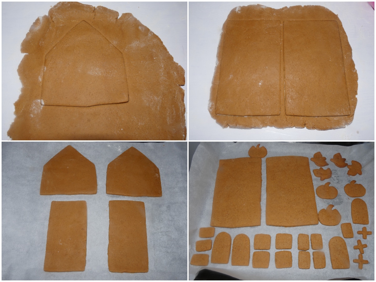 Riprendete la frolla, stendetela sul piano infarinato in una sfoglia spessa 4-5 mm, quindi ritagliate i 6 pezzi della casetta.