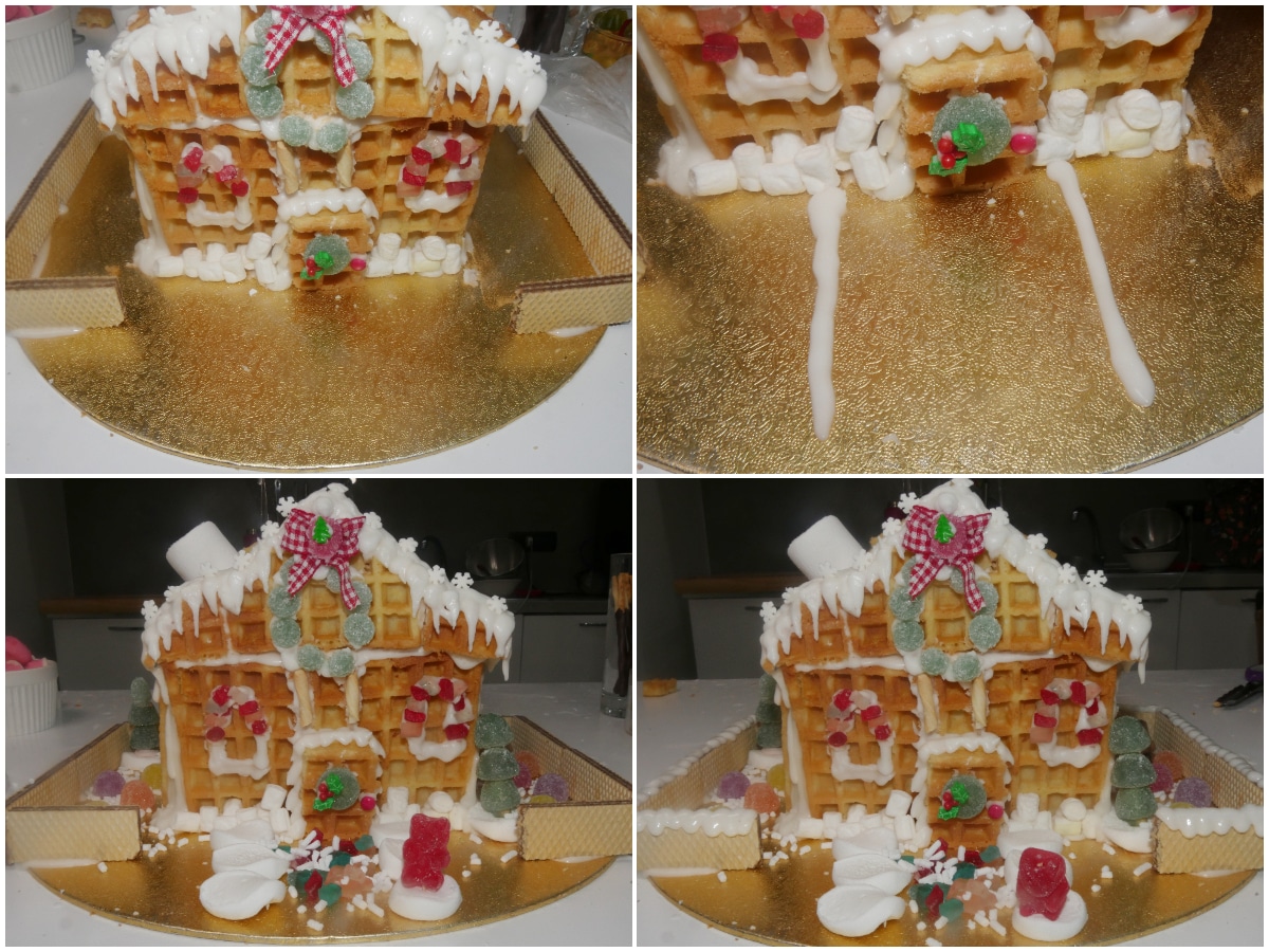 La casetta natalizia di waffle è una carinissima alternativa alla tradizionale casetta di pan di zenzero (o alla meno diffusa baita di savoiardi). In questo caso avrete la scelta tra 2 diverse opzioni: potete preparare i waffle in casa, oppure optare per quelli già pronti (ormai si trovano in tutti i supermercati), a voi la scelta. Per quanto riguarda la decorazione potete prendere spunto da me o dare spazio alla vostra fantasia, ricordate solo di anticiparvi di 1 giorno, in modo da avere il tempo di far asciugare bene la glassa reale.