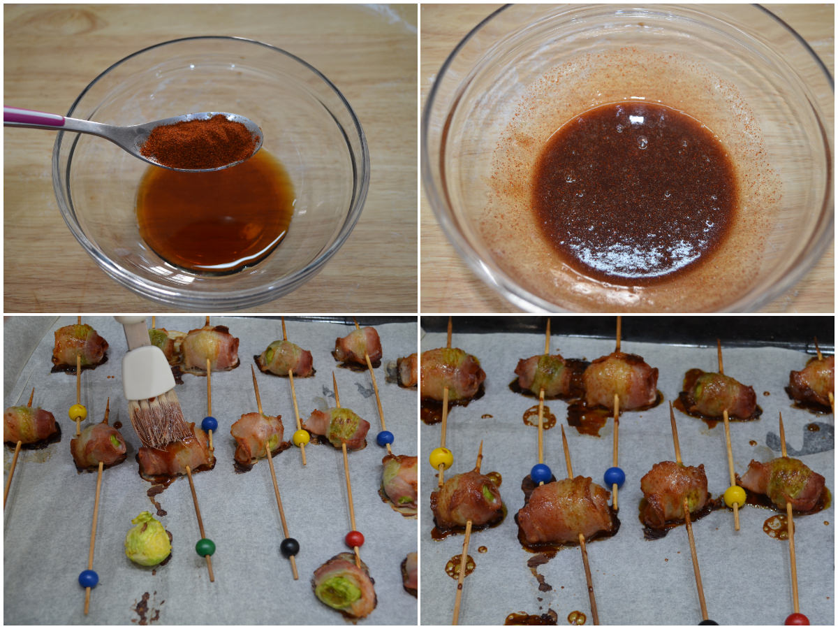 I cavolini di Bruxelles al bacon sono un contorno di verdure sfizioso e saporito che potete servire anche come antipasto e che sono certa potrà stupire anche chi non ama questa verdura spesso snobbata o dimenticata. Personalmente ho apprezzato molto questo accostamento e soprattutto l'originalità degli spiedini e il contrasto tra la croccantezza del bacon e la morbidezza dei cavolini di Bruxelles all'interno, per non parlare del tocco in più dato dallo sciroppo d'acero e dalla paprika che rendono il tutto ancora più speciale. Insomma, vi lascio alla ricetta, ma se piace anche a voi non mancate di farmelo sapere nei commenti ;)