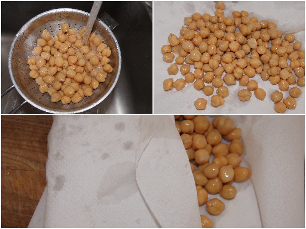 Scolate i ceci lessi, sciacquateli e asciugateli con della carta assorbente.