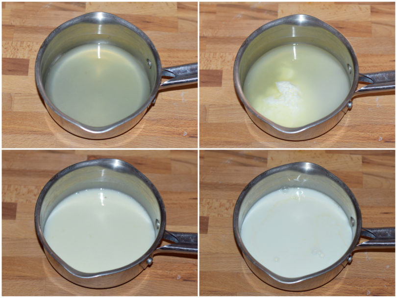 Strizzate bene la polpa di limone tra le mani per ricavarne tutto il succo (attenzione a eventuali taglietti o pellicine tirate su dita e mani: se ne avete indossate i guanti), filtratelo e mettetelo in un pentolino con zucchero, amido di mais e latte, mescolando bene.