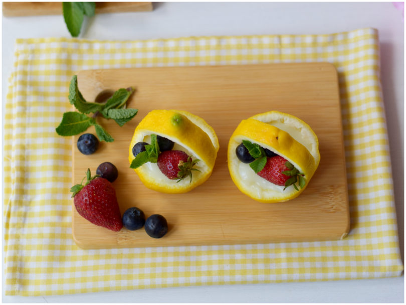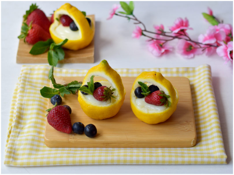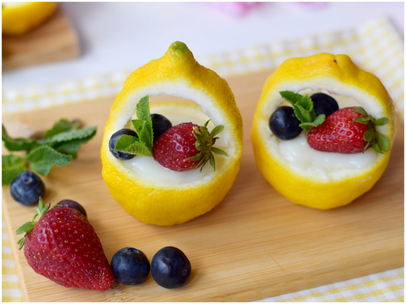 Una volta raffreddata la crema i cestini di limone sono pronti, non vi resta che decorarli con i frutti di bosco e servirli.