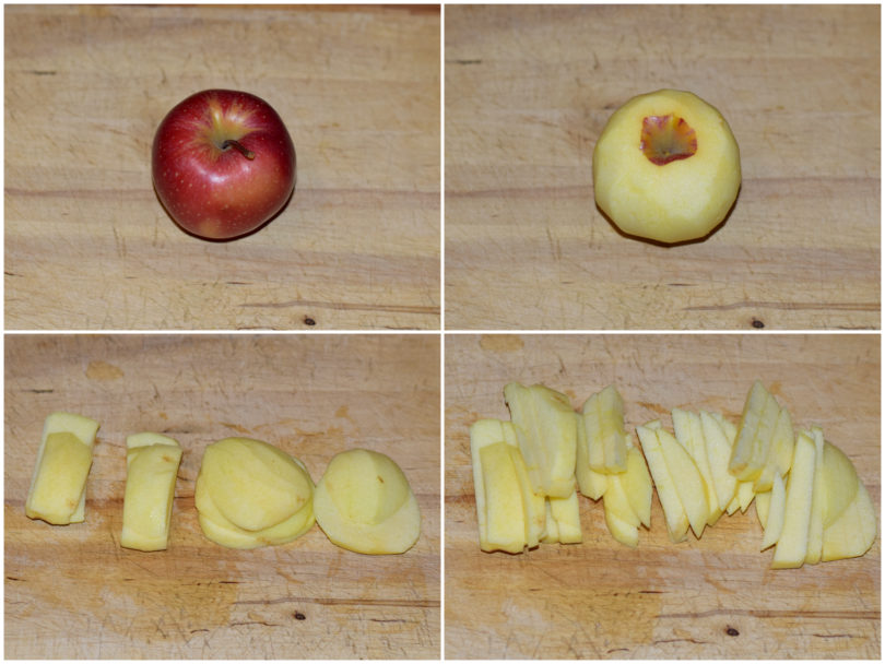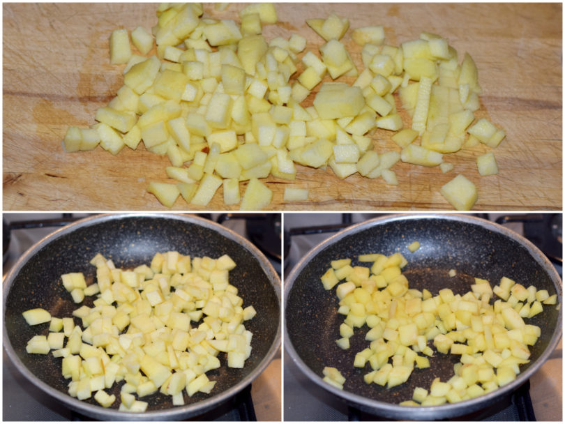 Innanzitutto mondate le mele e tagliatele a cubettini.