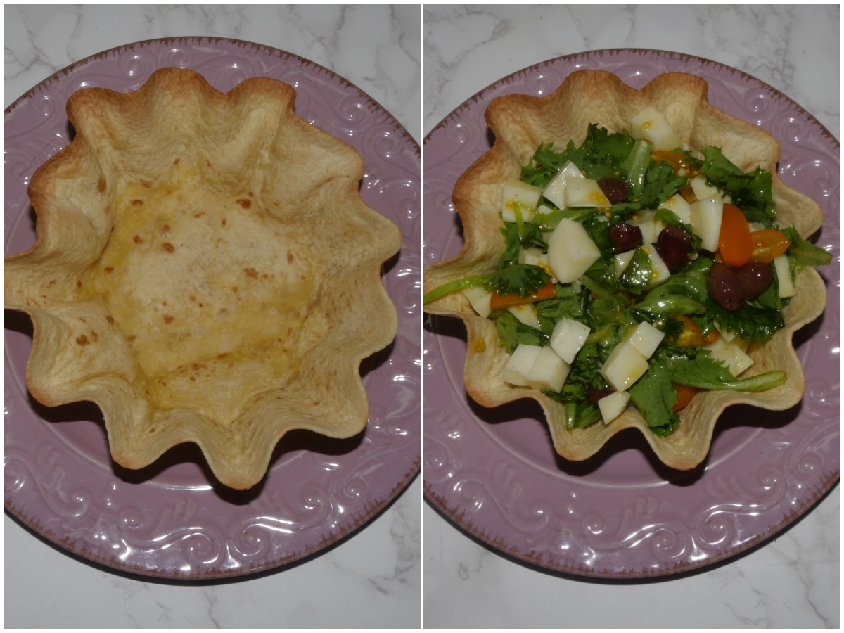 I cestini di piadine con insalata sono pronti, non vi resta che servirli.