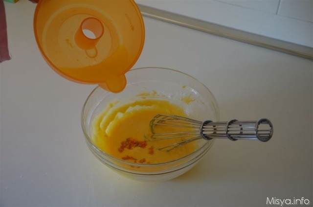 Mescolare con una frusta fino ad ottenere una crema fluida.