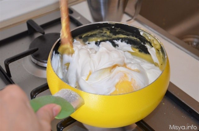 In una terrina dopo aver montato i tuorli con lo zucchero, aggiungere la fecola.