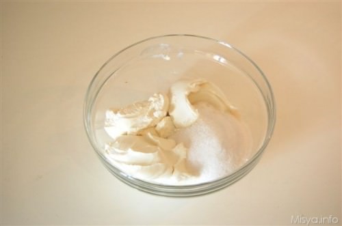 In una terrina lavorare la philadelphia e la ricotta insieme allo zucchero e alla vanillina