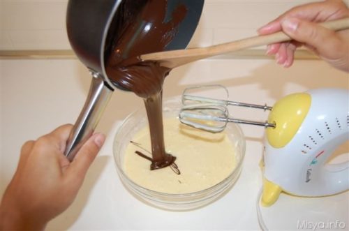 Mescolare fino ad ottenere una crema liscia ed omogenea quindi aggiungere il cioccolato fondente fuso.