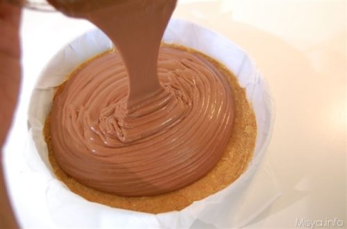 Versate la crema al formaggio al cioccolato sulla base dei biscotti