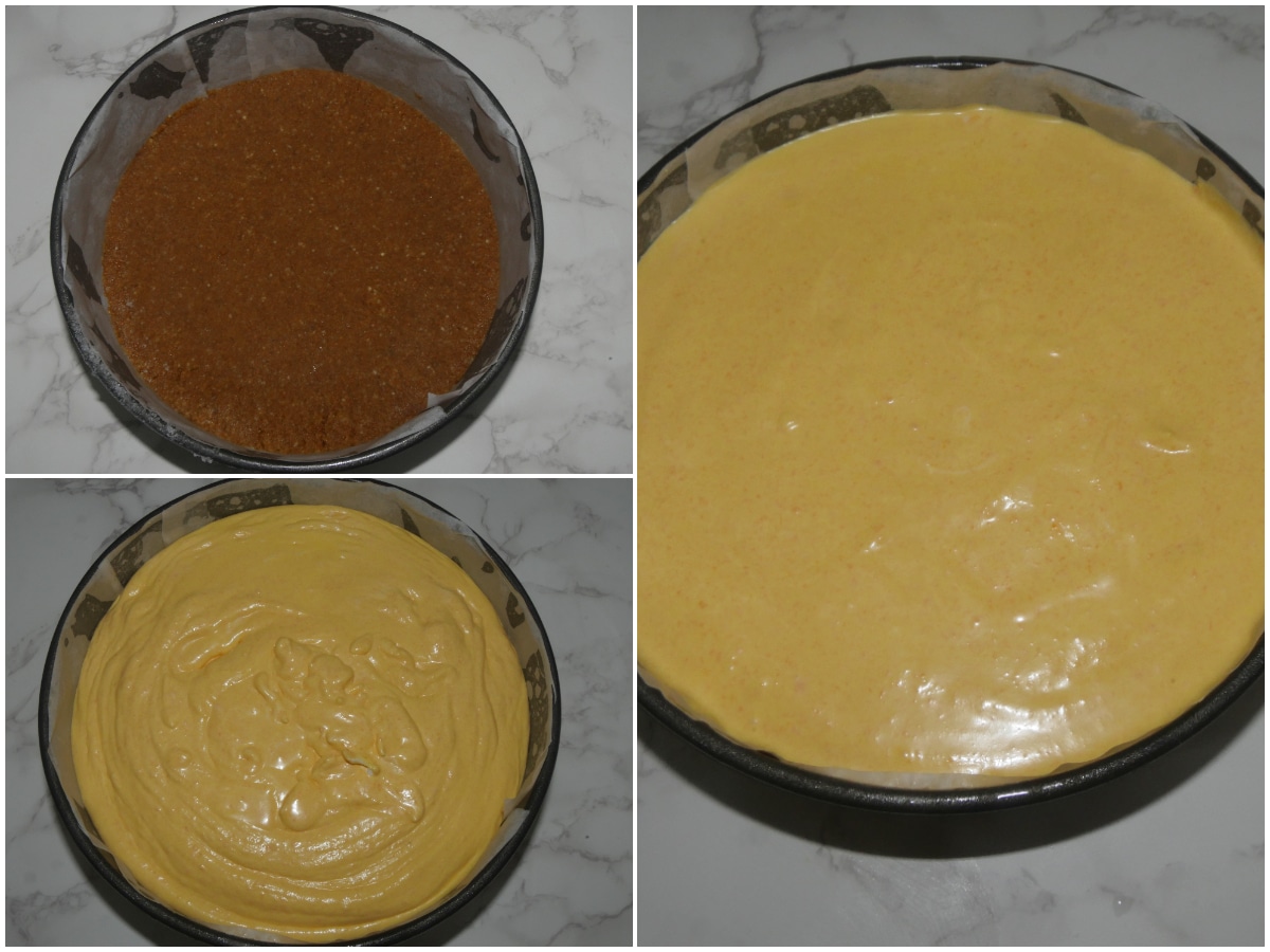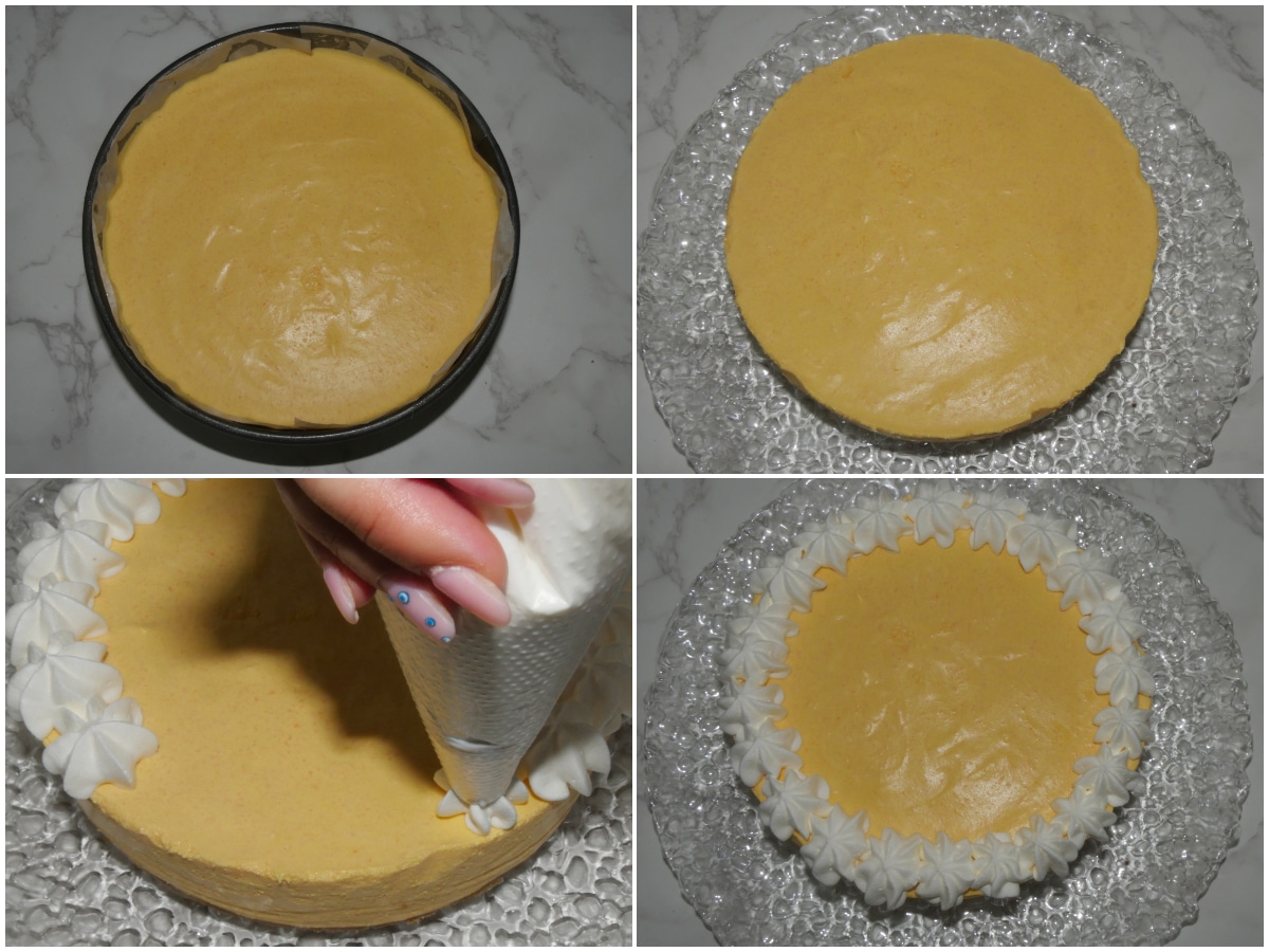 Versate la crema sulla base, livellate la superficie e lasciate riposare in frigo per almeno 4-5 ore.