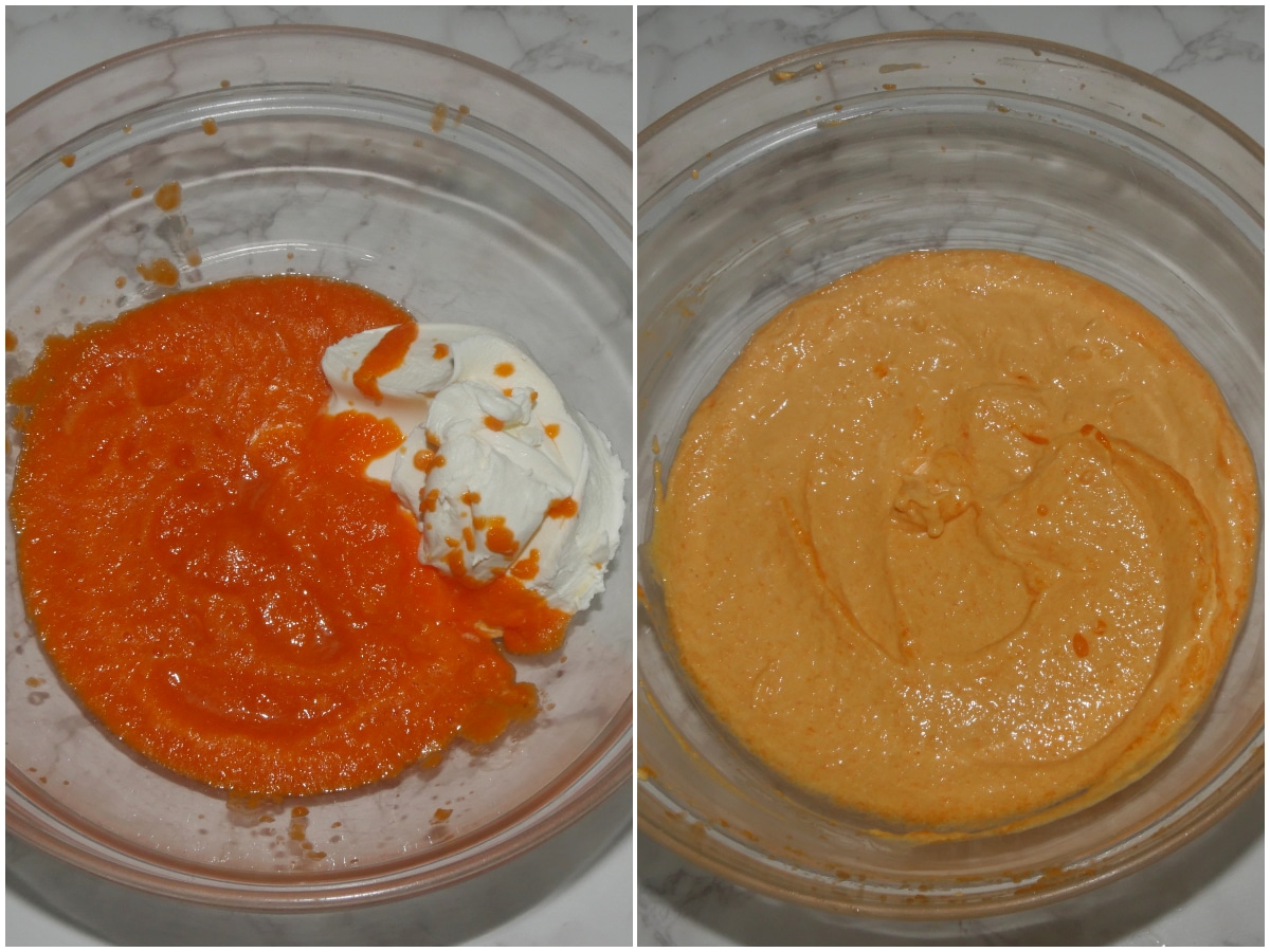 Versate in una ciotola Philadelphia e purea di zucca e amalgamate.