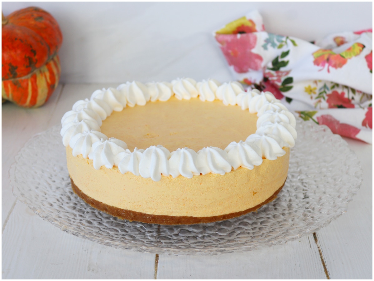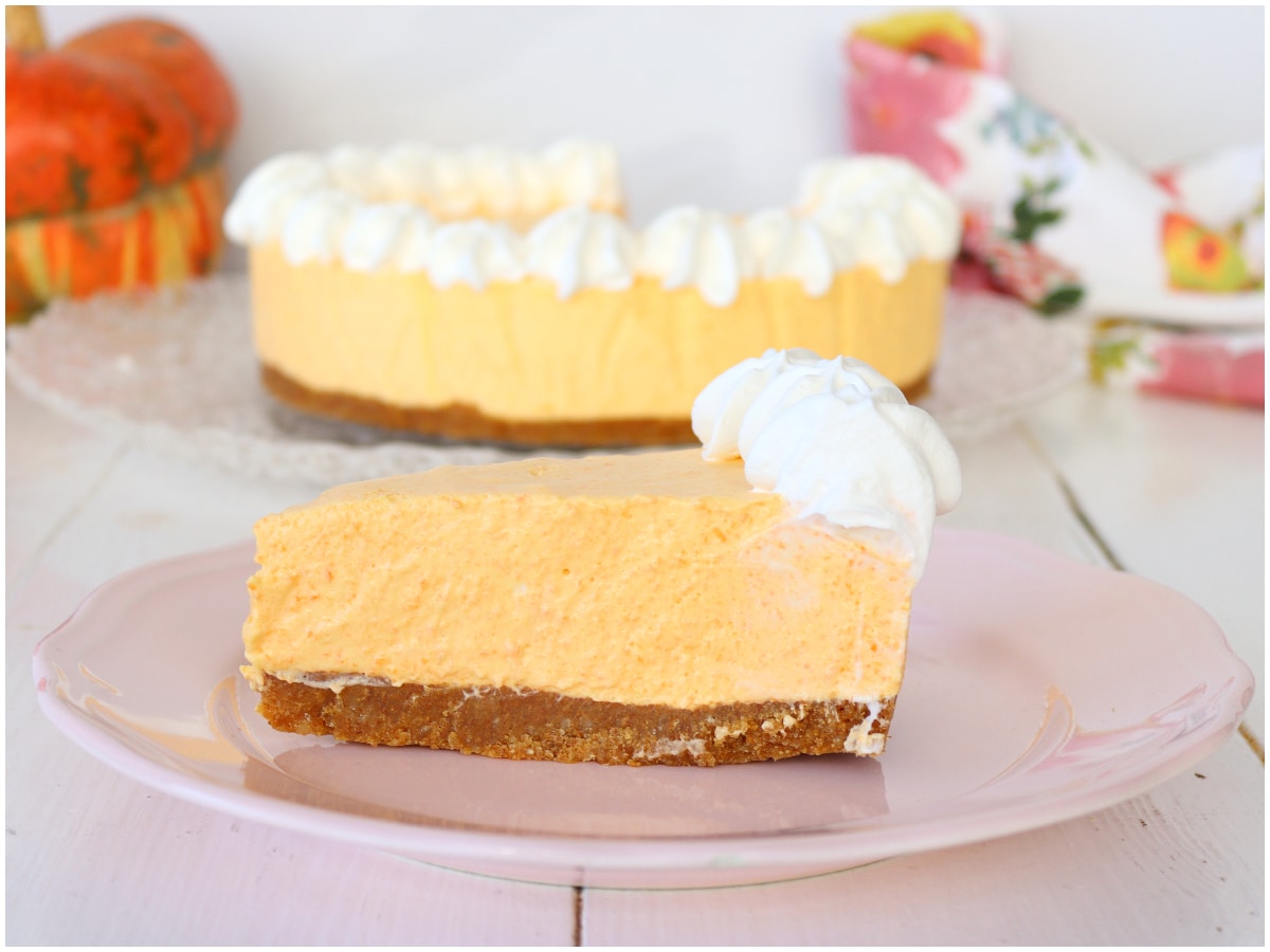 La cheesecake alla zucca senza cottura è pronta e potete già servirla così.