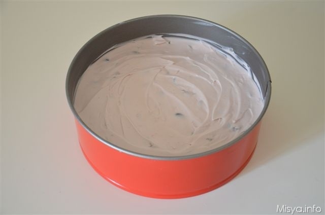 Versare il tutto nello stampo, livellate il più possibile, quindi mettete il cheesecake alle ciliegie in frigo a riposare per almeno 3 ore.