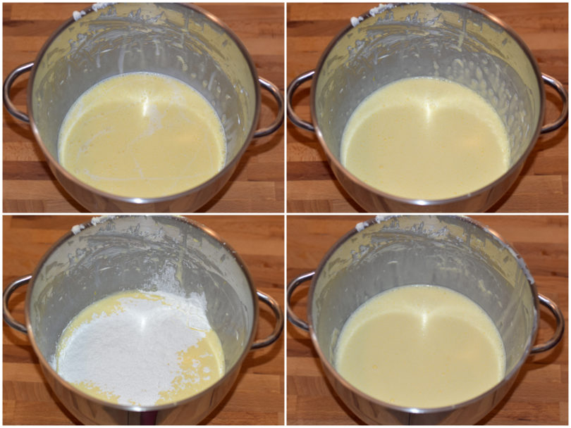 Infine unite anche la panna e poi l'amido setacciato, utilizzando una spatola per amalgamarli con delicatezza.
