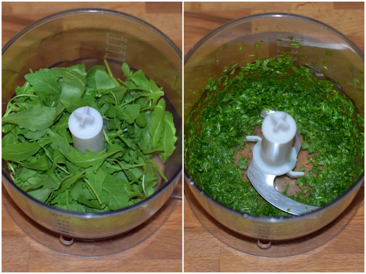Nel frattempo frullate la rucola (già pulita e lavata, ma non troppo bagnata).