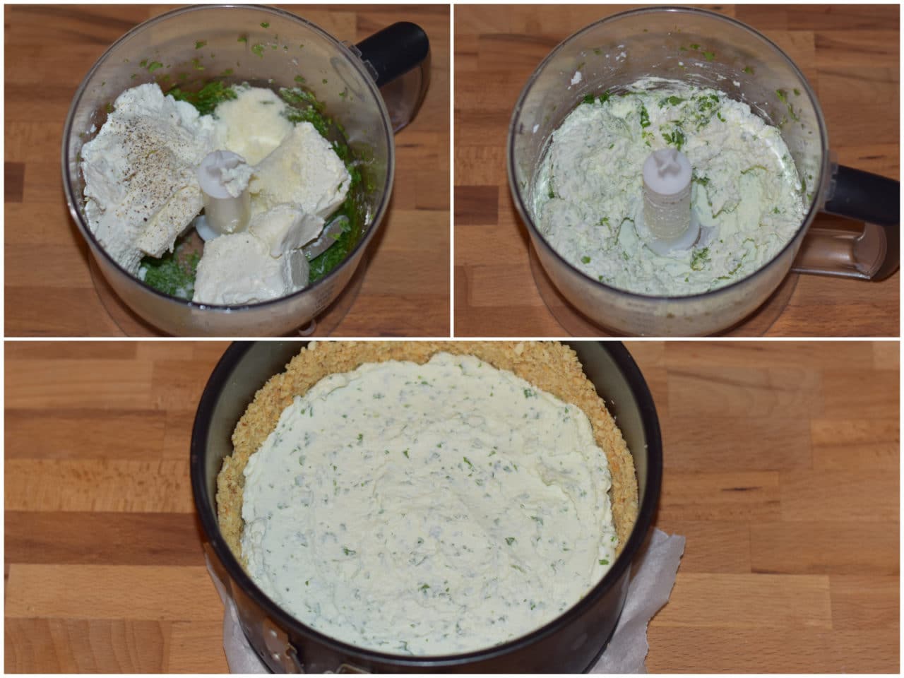 Unite i formaggi (ricotta, robiola e grana), condite a piacere con sale e pepe e frullate ancora fino ad ottenere una crema liscia.