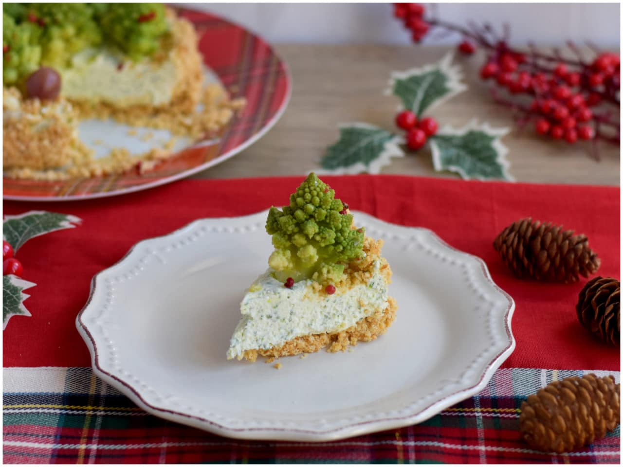Questa cheesecake di Natale, contrariamente a quanto si potrebbe pensare, non è un dolce: si tratta bensì di una cheesecake salata! Trovo che i broccoli romaneschi simulino splendidamente degli alberi di Natale, in più questa ricetta senza cottura è studiata in modo da essere pronta davvero in un paio d'ore, riposo in frigo compreso (quasi una ricetta furba, insomma), quindi non sarà necessario anticiparsi al giorno prima, se non lo desiderate. Sperando dunque di avervi dato un'idea interessante per queste festività natalizie, vi lascio alla ricetta e ci leggiamo più tardi ;)