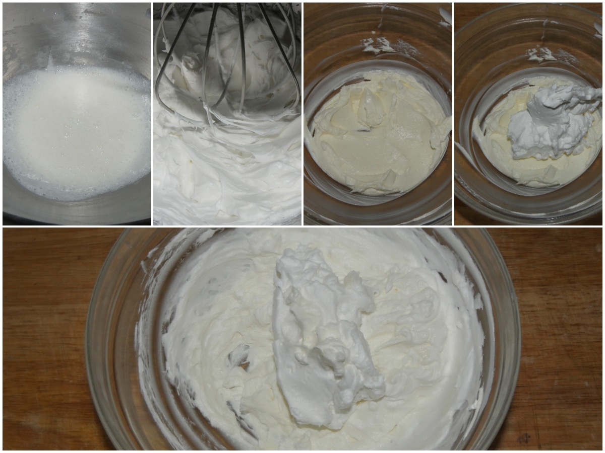 Montate la panna ben fredda di frigo, quindi incorporatela al formaggio, mescolando delicatamente per non smontarla troppo.