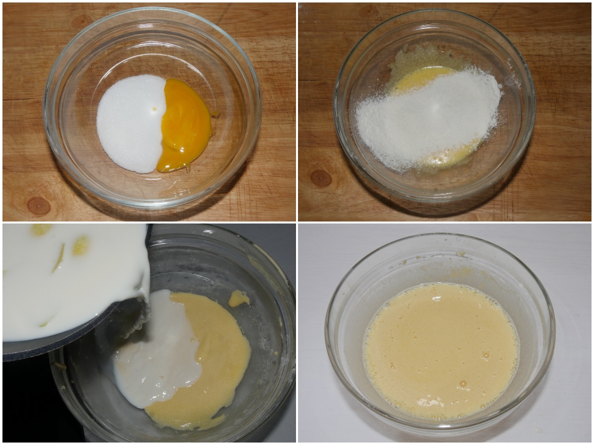 Innanzitutto preparate la crema pasticcera: Sbattete il tuorlo con lo zucchero, quindi incorporate prima la farina e poi il latte caldo, versandolo a filo.