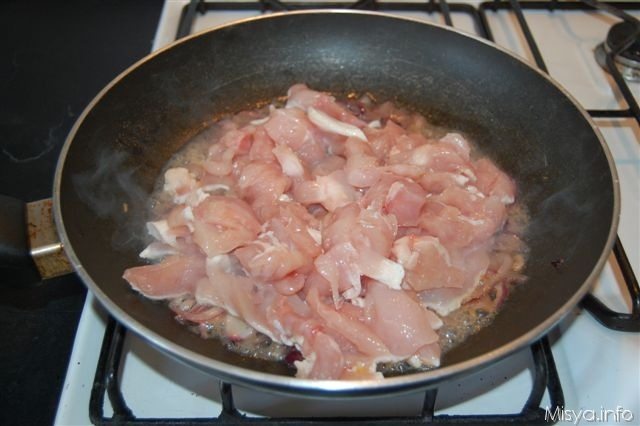Aggiungete ora il petto di pollo tagliato a pezzetti