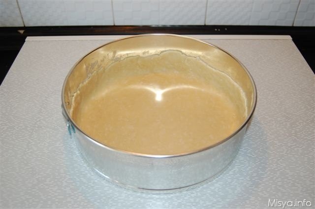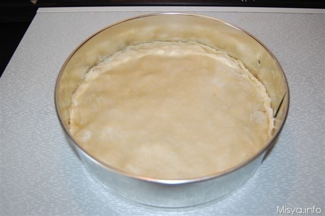 Foderare con il primo strato di pasta brisee uno stampo a cerniera imburrato