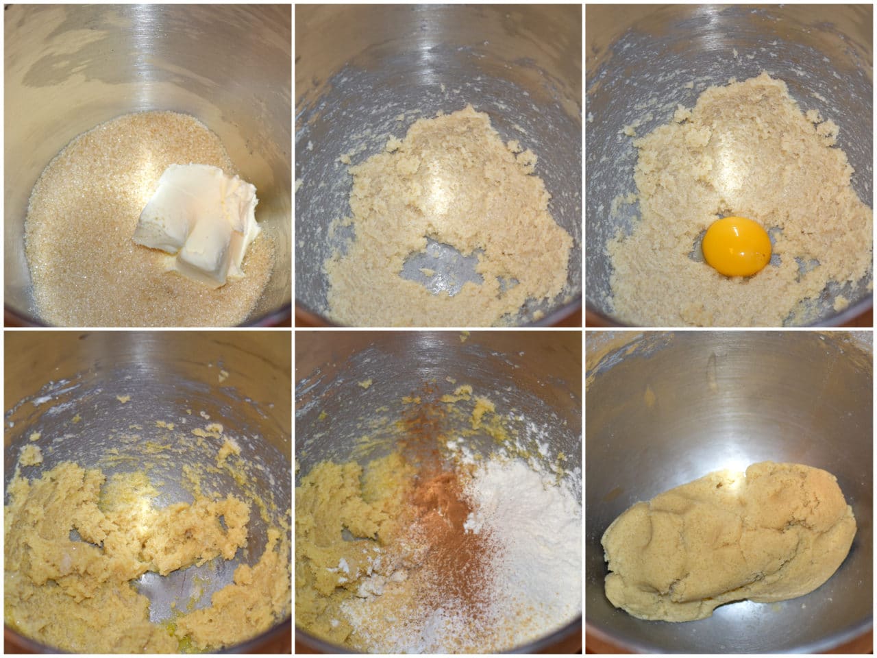 Innanzitutto montate il burro con lo zucchero, quindi incorporate prima il tuorlo e poi le polveri (farina, lievito, spezie) setacciate, lavorando fino ad ottenere un panetto omogeneo.