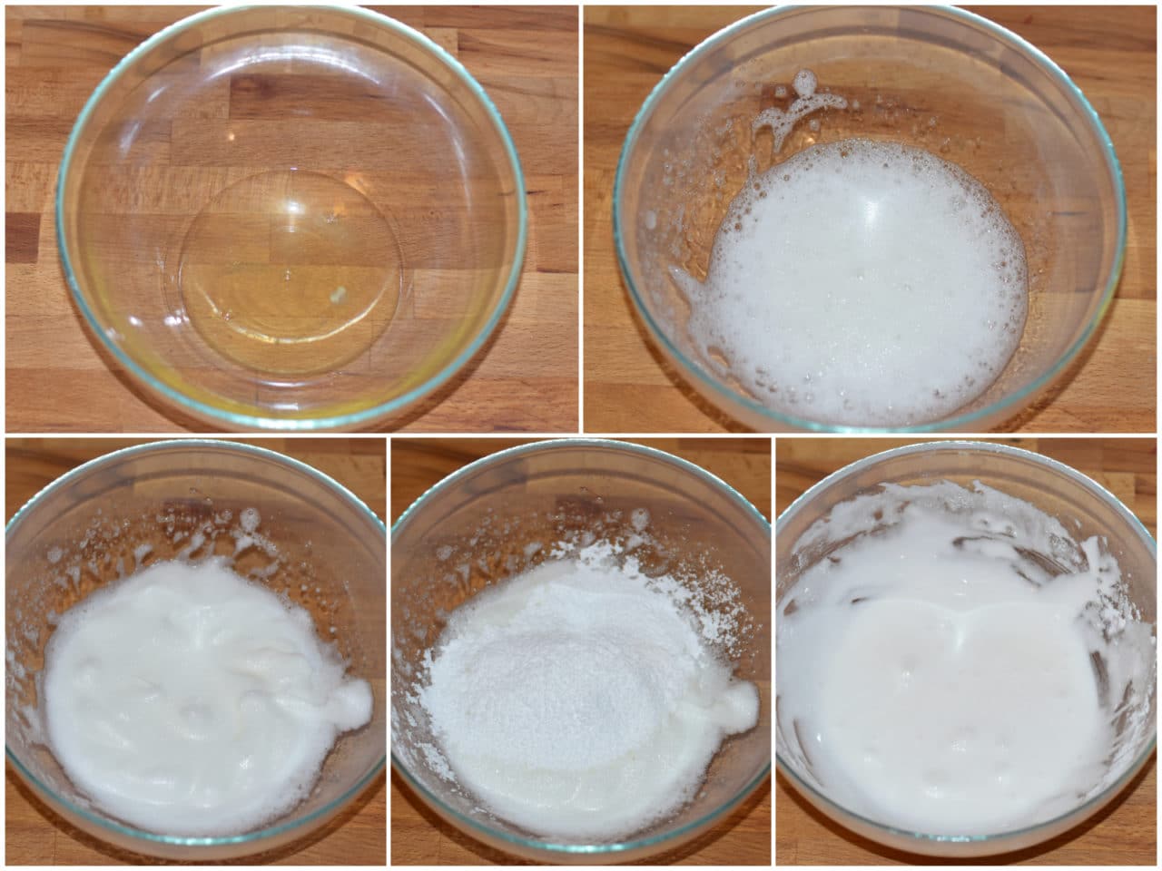 Preparate la glassa: iniziate a montare l'albume, quindi unite limone e zucchero e mescolate fino ad ottenere un composto omogeneo.