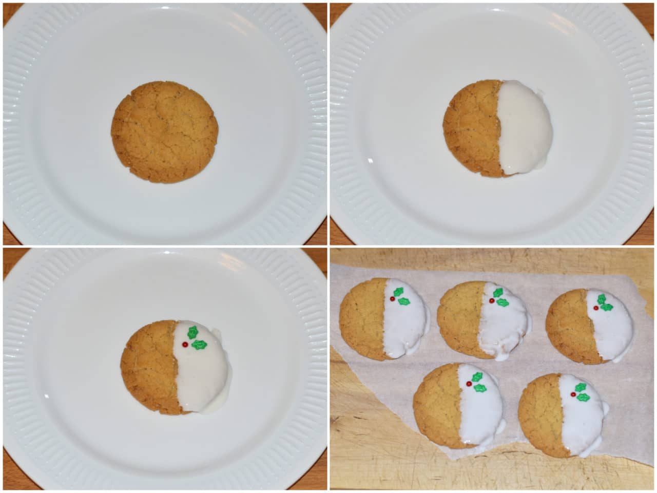 Procedete quindi con la glassatura dei biscotti: io ne ho glassato metà e ho aggiunto degli zuccherini per creare un decoro.