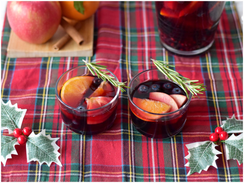 Christmas sangria? Ebbene sì! Colorata, profumata e festosa: questa versione natalizia della classica sangria spagnola è perfetta per brindare durante le Feste. Vino rosso, succhi di frutta invernali, frutta fresca e un tocco speziato di cannella la rendono scenografica e deliziosa, da servire ben fredda con rosmarino decorativo.