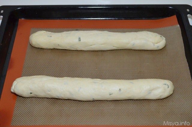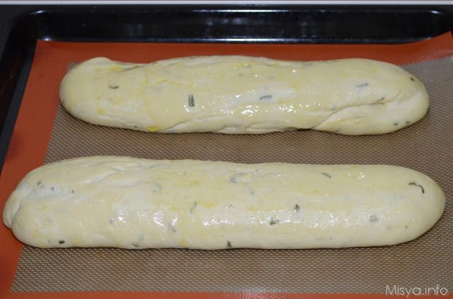 Riprendere l'impasto, dividerlo in 2 e fare 2 filoncini, Posizionare le ciabatte su una teglia unta d'olio e far lievitare ancora per 40 minuti
